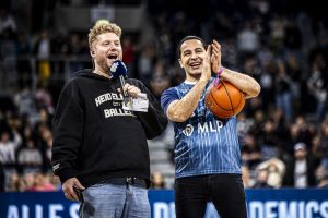 Buelent Ceylan und Kevin Gerwin (Hallensprecher, MLP Academics Heidelberg)